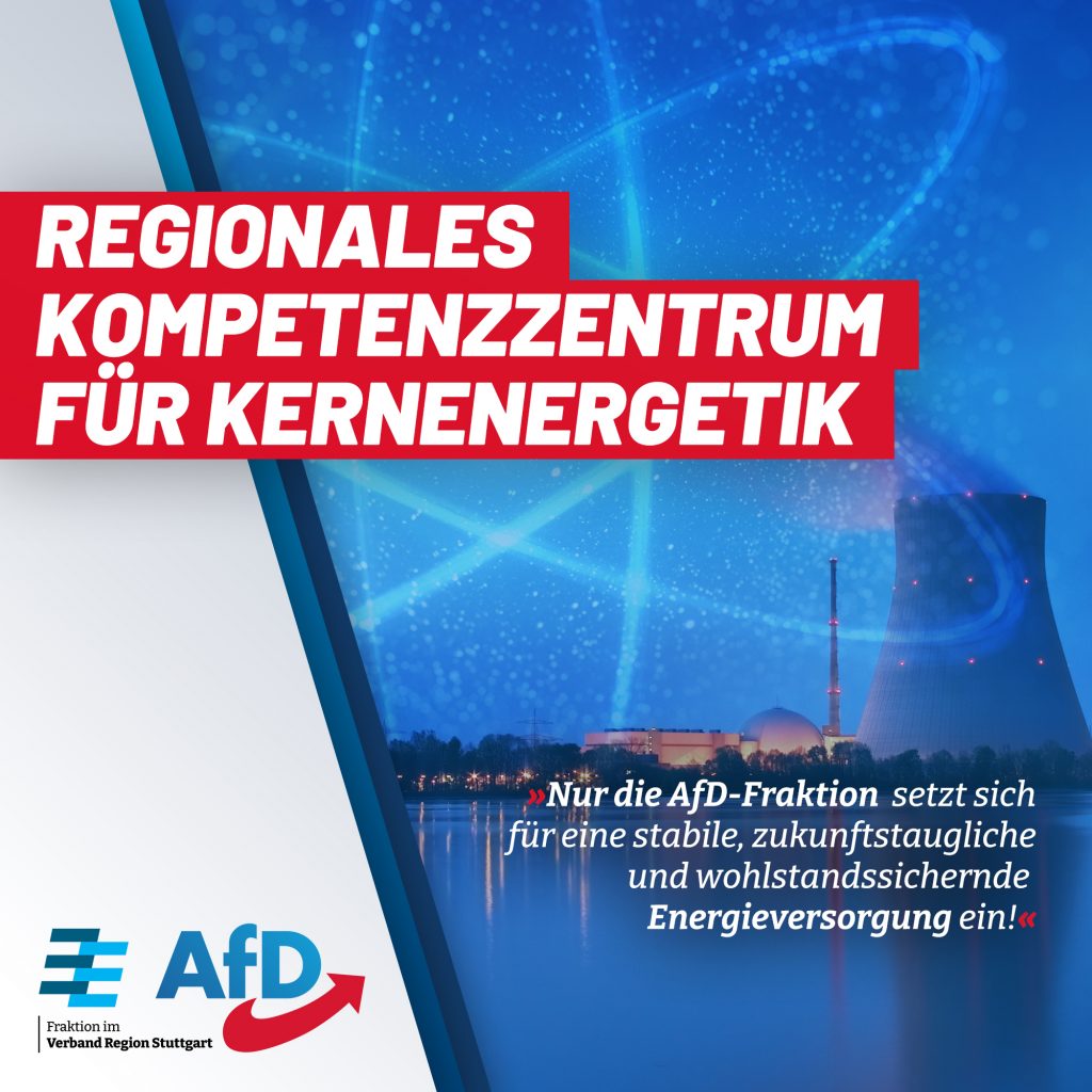 Antrag abgelehnt: Regionales Kompetenzzentrum für Kernenergetik in der Region StuttgartUnser Antrag, ein Kompetenzzentrum für Kernenergetik, Reaktortechnik und Materialforschung in der Region Stuttgart aufzubauen, wurde ohne Debatte abgelehnt. Die Region droht damit in diesem wichtigen Bereich den Anschluss zu verlieren.Unser Antrag ist ein wichtiger Schritt, um Innovation, Forschung und Nachwuchsförderung zu stärken. Auch Fraktionen, die neuerdings…
